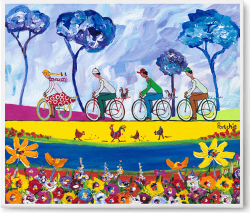 Hens and roosters are randomly selected, facing different directions and placed at different locations next to the riverbank. The more of them, the greater the rarity. Iconically, roosters can also be found on the back of some of the bicycles, and there's one particular rooster named Ernie that is super rare.
